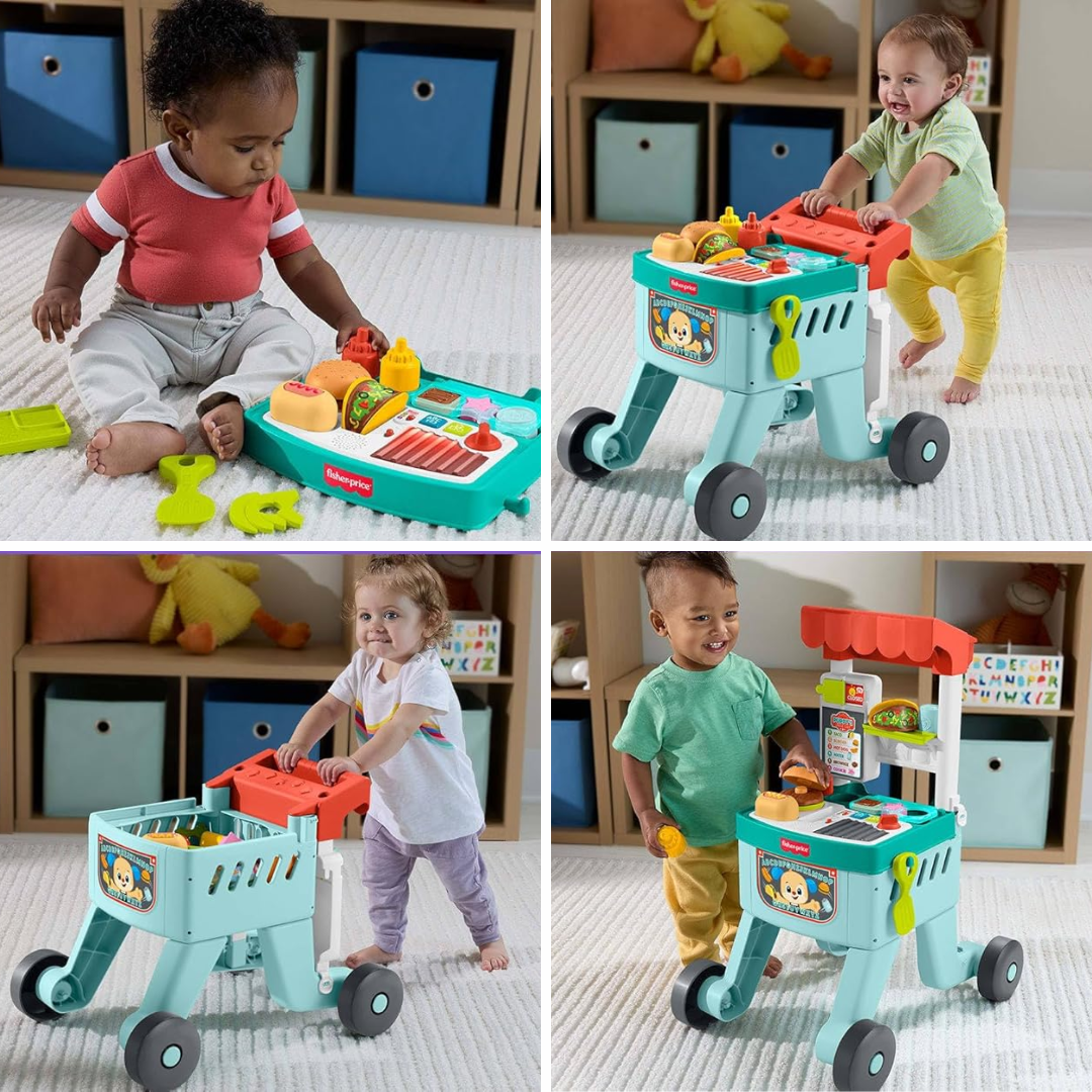 Com um conceito versátil, ele oferece quatro formas de uso que evoluem junto com a criança: pode ser utilizado no chão, para o bebê brincar sentado; como apoio para empurrar e dar os primeiros passinhos; como carrinho de compras; e também como uma divertida estação de faz de conta, onde o pequeno pode cozinhar, servir e criar suas próprias histórias.