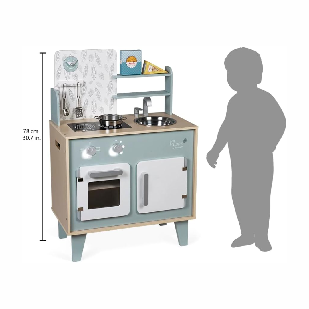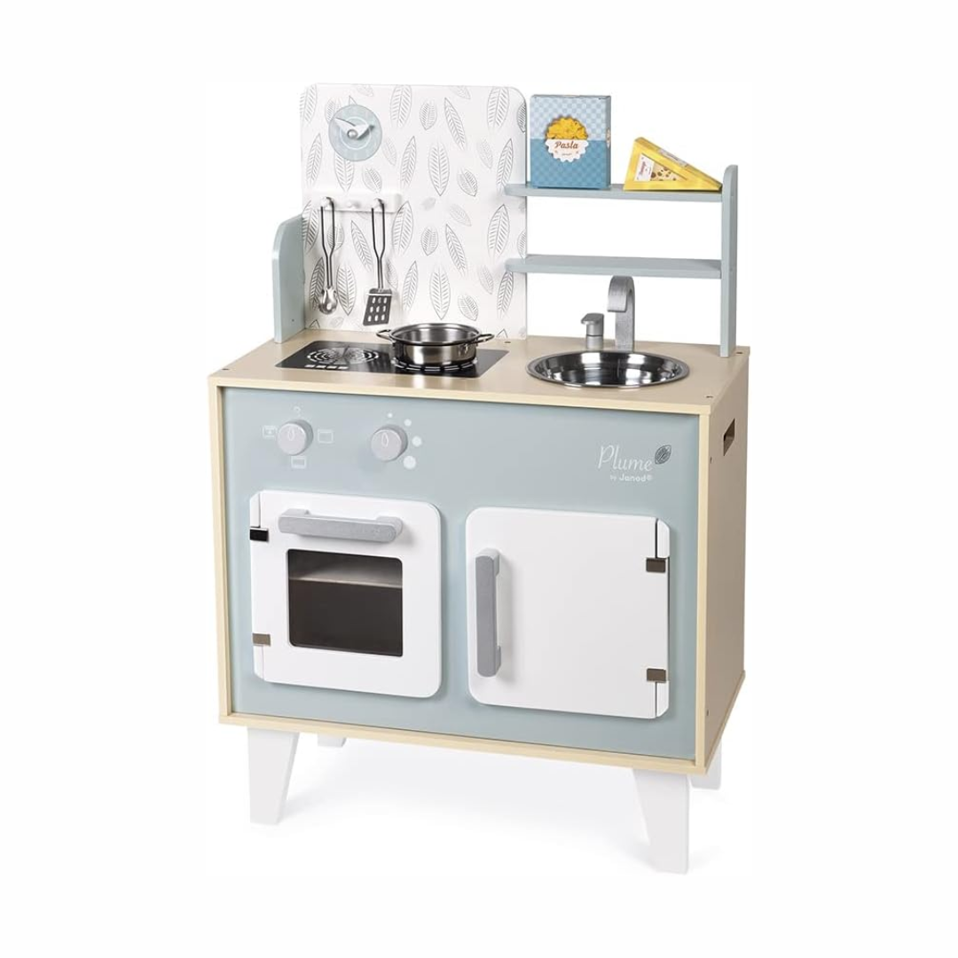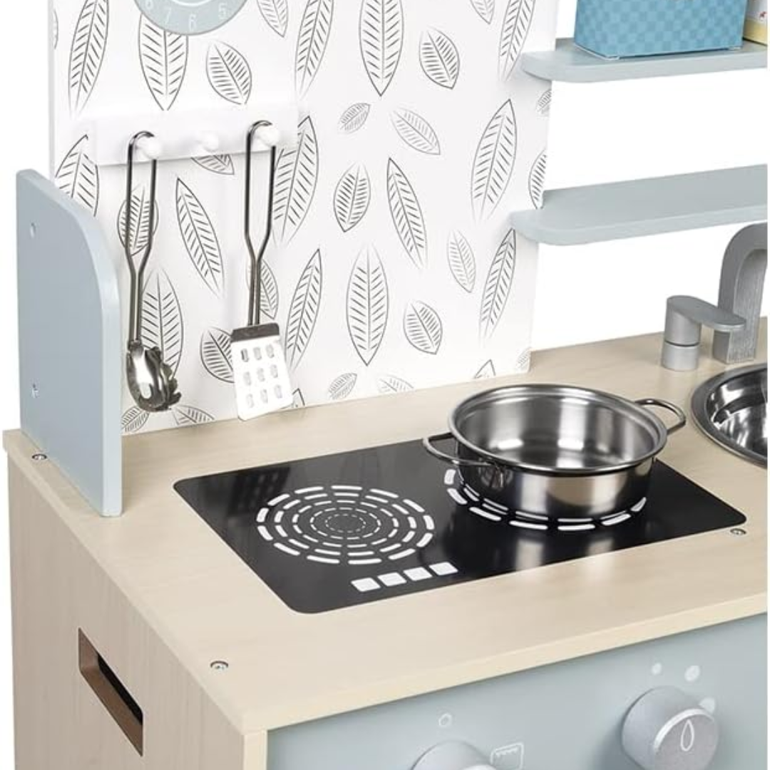 Com design moderno em tons suaves de azul e cinza e detalhes delicados, essa cozinha é perfeita para crianças a partir de 3 anos, transformando a brincadeira de faz de conta em uma experiência ainda mais divertida e cheia de descobertas. Equipada com forno, pia em inox, armário com portas magnéticas e até um relógio para não perder o tempo do “bolo no forno”, ela conta ainda com fogão de indução com botões giratórios e efeitos sonoros, aproximando a brincadeira do mundo real.
